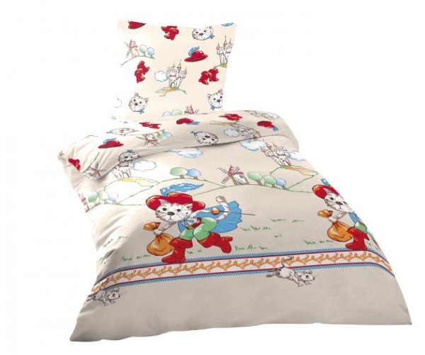 Detské posteľné návliečky s motívom Kocúr v čižmách, ktoré potešia milovníkov tejto rozprávkovej postavičky.